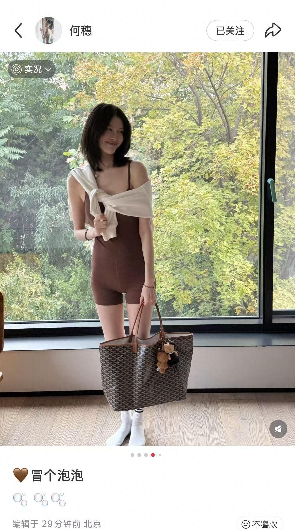 被大家叫 “仙姑” 的何穗,本来就白到发光、颜值身材双在线,消失一年安心待产,复出后反而更漂亮更白皙了。那双腿又细又长,也难怪大家都夸陈伟霆眼光好,不管是之前的 Angelababy、蔡卓妍,还是现在的老婆何穗,个个都是女神级别的人物。 从她的穿着和背景来看,网友都猜是在北京的家里拍的,窗外就是一片树林,大概率是和陈伟霆住在北京郊外的别墅里。窗户离花园特别近,他俩都是明星,肯定很注重隐私,这片花园说不定就是别墅自带的私人空间呢。之前陈伟霆官宣儿子出生时晒的抱娃户外照,现在看应该就是在这儿拍的。